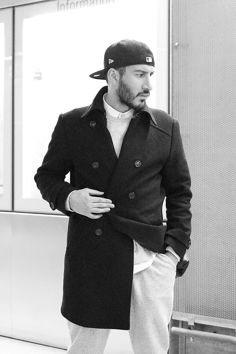 Ich schwöre, es ist ein komischer Zufall, aber das ist mittlerweile der dritte Look mit Joggern in Folge. Aber ganz ehrlich, was eignet sich denn besser für ne schnelle Stadttour für die letzten X-Mas-Goodies? Aber auch, dass ich die Dinger einfach zu gerne mit klassischen Mänteln trage, ist der Grund für die verschiedenen Variationen. Zweifellos finde ich die Kombination von hellen grauen Sweatpants und -shirts mit silbernen Sneakern perfekt.